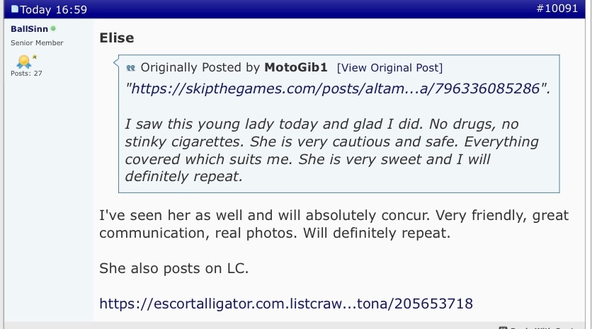 Looking for a sensual experience With a Beautiful, Open minded, Bubbly BOMBSHELL! PURE SEDUCTION! My name is Elise. Your new FAV! The ultimate companion for those with good taste. Allow me to do what I Love! Please & Pamper you! I'm adventurous & very easy to get along with! Don't be shy to ask for your deepest fantasies! Great with my hands and I LOVE to provide Sensual, Deep Tissue Massages! Satisfaction Guaranteed! No Bare! No Greek! No Drama! Pretty Feet For Any Fetish! Peg/Dom/Humiliation Also Available, Just Ask Babe!